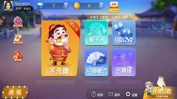 3、主推的模式当然还是斗地主了,玩法多,赛制也很多,手机电脑互通;