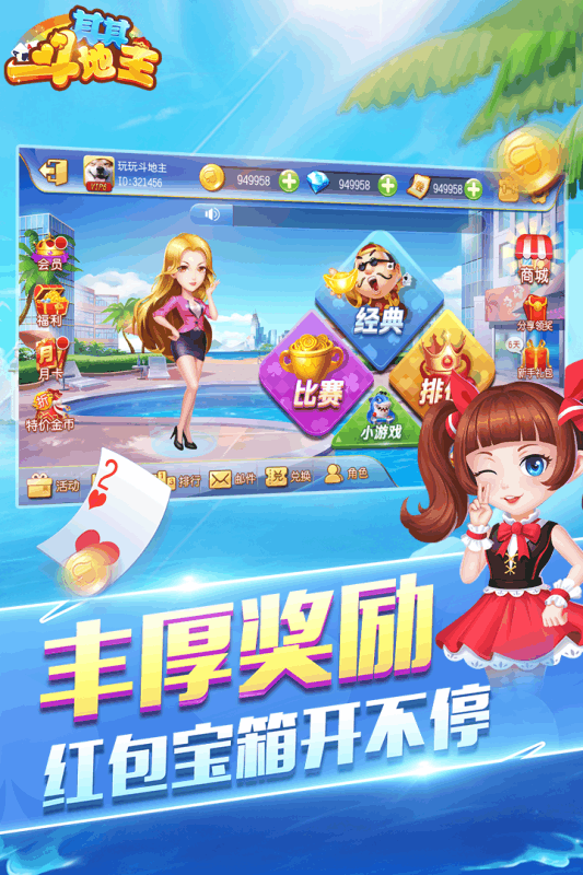 4、经典玩法乐趣多,欢乐经典、经典叫分、好友比拼;锦标赛,随机应变,直赢大奖。
