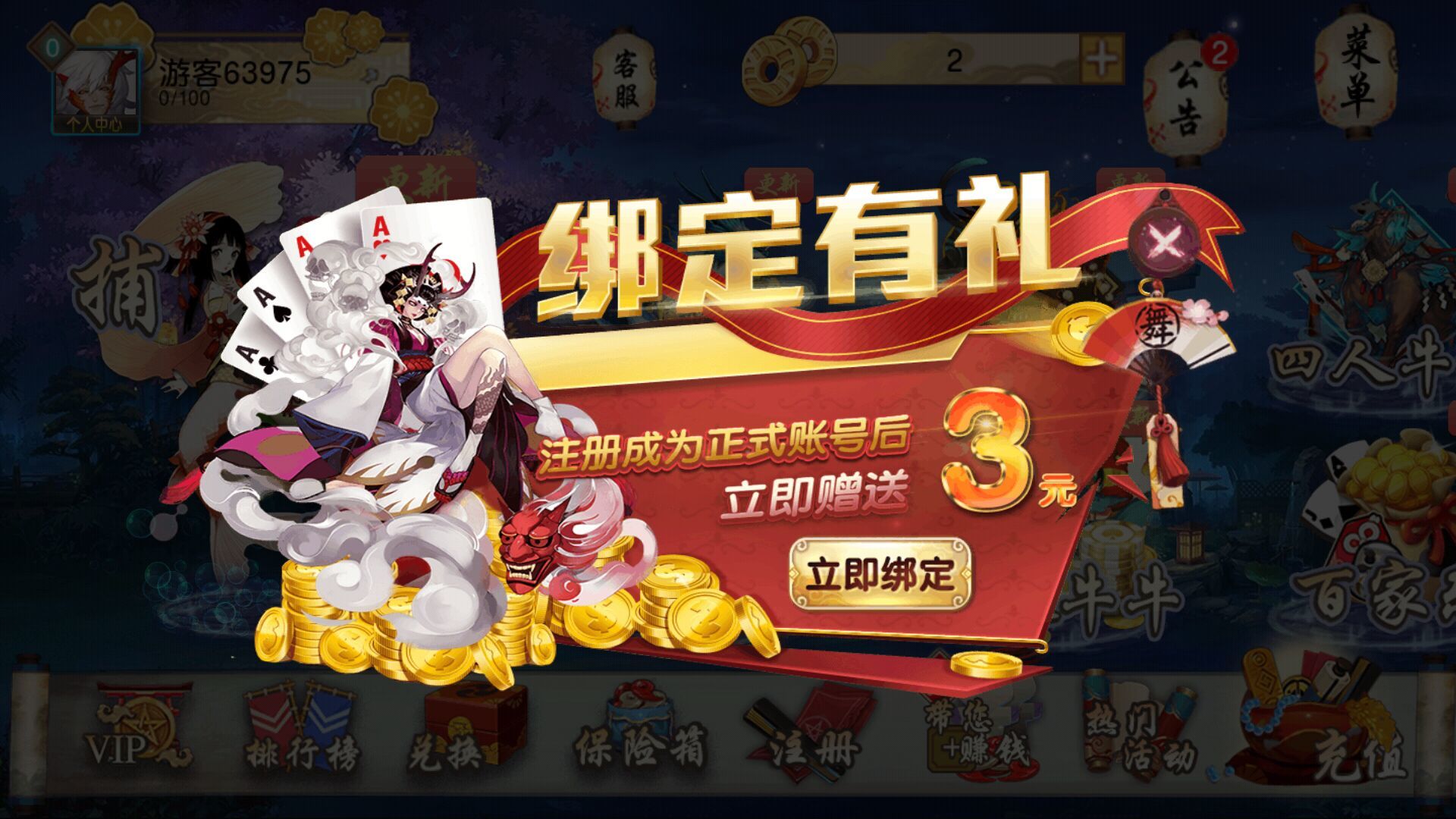 1.投入锅底(房间底注)