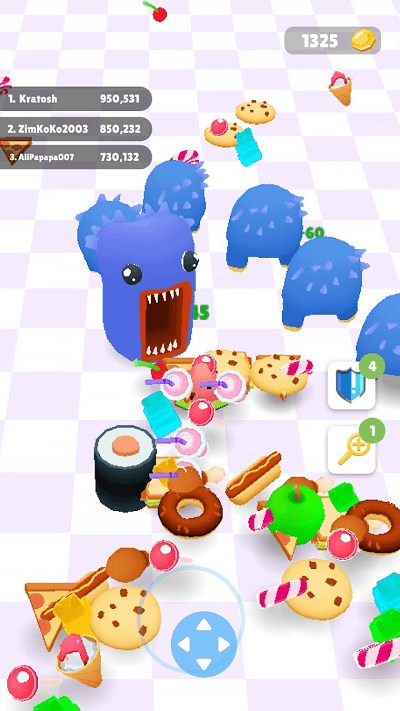 3、多人竞技乐趣:支持4人同屏对战,实时比拼吞噬速度与策略,争夺"最强吃货"称号。碰撞机制让玩家可以干扰对手进食。
